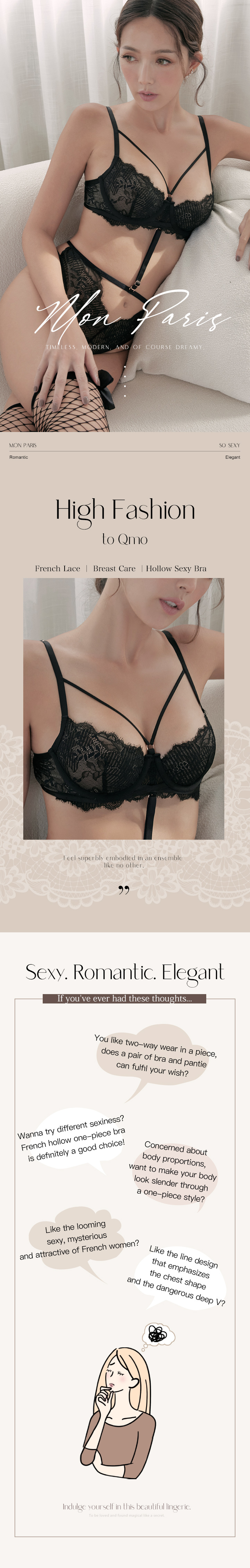 The cross webbing covers the breast gently to get deep V effortless
