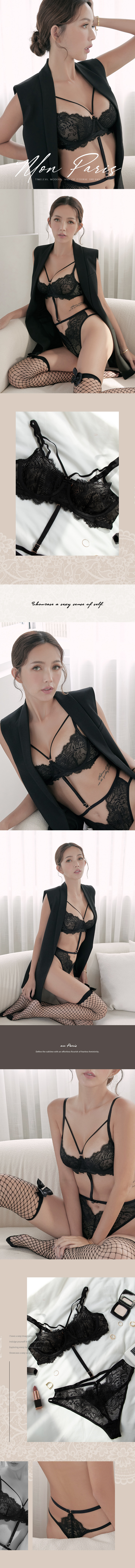 【Mon Paris】U Rim Thin Lace Bra (Black Currant)